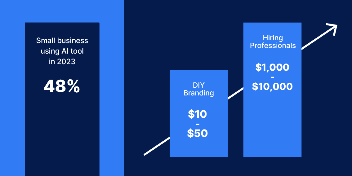 AI branding tools are going mainstream. We’re seeing the “lean branding“ strategy, which employs an incremental approach to small business marketing, rising in popularity. As such, the lines between DIY marketing and professional marketing are becoming blurred.